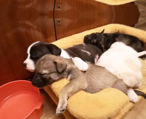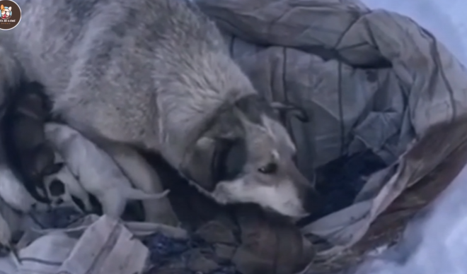 As hours passed, the pups nestled closer, instinctively searching for comfort. Their breaths became steady, their bodies no longer shaking. The mother finally allowed herself to rest, her body curved protectively around them. Every rise and fall of her chest was measured, controlled, as if she feared that even one careless breath could let the cold back in.