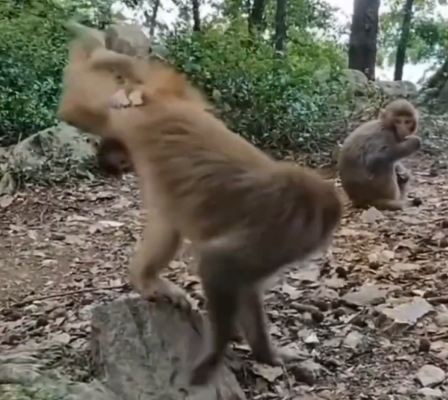 The other young monkeys of the troop started to take notice. They watched in fascination as the baby claimed its small victories, learning not just how to feed itself, but how to stand for its own needs. The jungle seemed to hum with admiration, as if recognizing the courage of this tiny being.