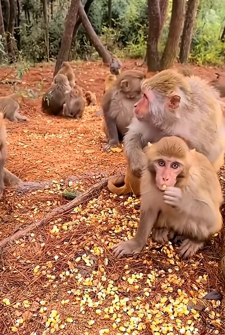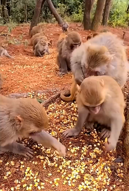 The video captured every moment: the crunch of shells, the baby monkeys tumbling, the playful gestures, the attentive mothers, and the clever leader distributing peanuts with calculated grace. It was no wonder that once uploaded online, the clip began to circulate rapidly. People everywhere marveled at the scene, hearts melting at the sight of the tiny infants clinging to their parents, laughter echoing in the jungle air, and the sheer joy radiating from every movement.