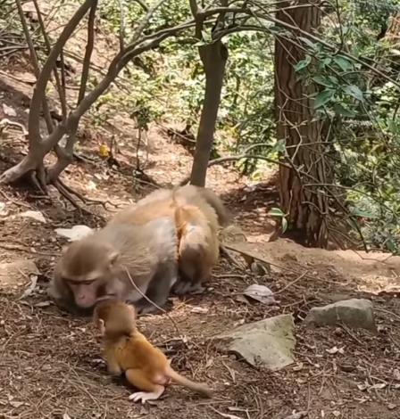 The baby monkey’s innocence and curiosity were infectious. The other young monkeys crept closer, tentative but intrigued, watching the tiny newcomer with fascination. They sniffed at it, approached it, and received gentle nudges from their elders, signaling the importance of patience and respect. The baby’s presence reminded the troop of the simple joys of life: wonder, discovery, and the magic of new beginnings.