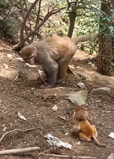 Among them was a female monkey, her brown fur glistening in the early light. She moved carefully, pausing more often than usual, her eyes alert yet distant, as if waiting for something she could neither predict nor control. Today was different. Today, the rhythm of her breath was heavier, her movements slower, tinged with anticipation. She was about to give birth.
