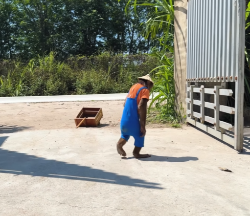 Eventually, the animals left, the rice was gone, and Dad removed the hat—carefully. They packed up, still laughing.