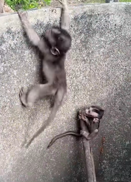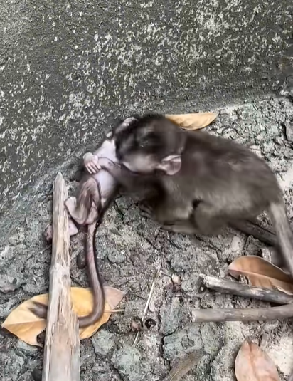 The baby monkey’s eyes, wide with fear, scanned the dark forest. Every shadow seemed threatening, every rustle of leaves made him flinch. He missed his mother’s warm embrace, her gentle grooming, and the soothing sound of her voice. Above all, he was hungry. The sweet milk that had sustained him was no longer within reach, and the forest seemed too vast and confusing for a tiny monkey to navigate.