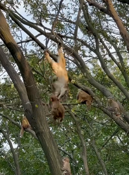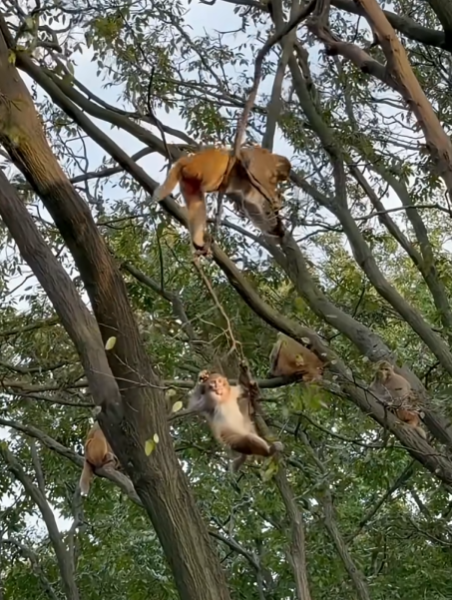 The adult monkeys rushed forward. Mothers screamed their children’s names as they climbed down quickly. When they reached the injured young ones, their hearts sank.