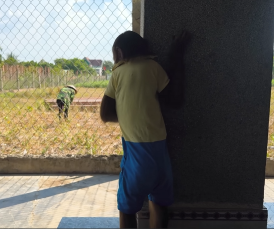CUTIS was not an ordinary little monkey. He was clever, quick, and always curious about everything around him. Most days, his curiosity led to harmless fun. But sometimes—especially when his ideas became a little too big—trouble followed close behind. On this particular afternoon, CUTIS was already hiding behind the wooden storage shed, peeking out with wide eyes and a mischievous grin.