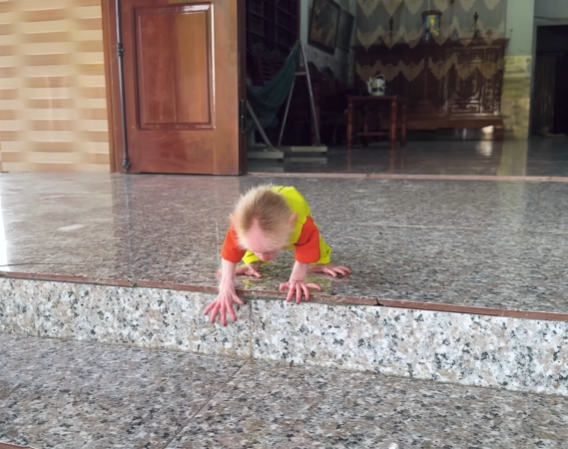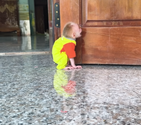 Mom was nearby, feeding the chickens. Baby Diven sat close to her, playing with a piece of straw and giggling softly. Everything looked peaceful. But CUTIS had already started his plan.