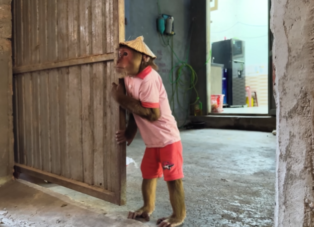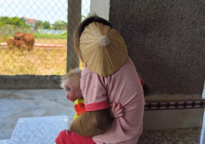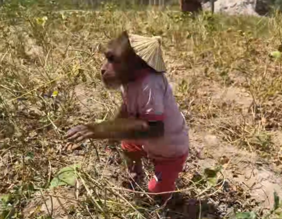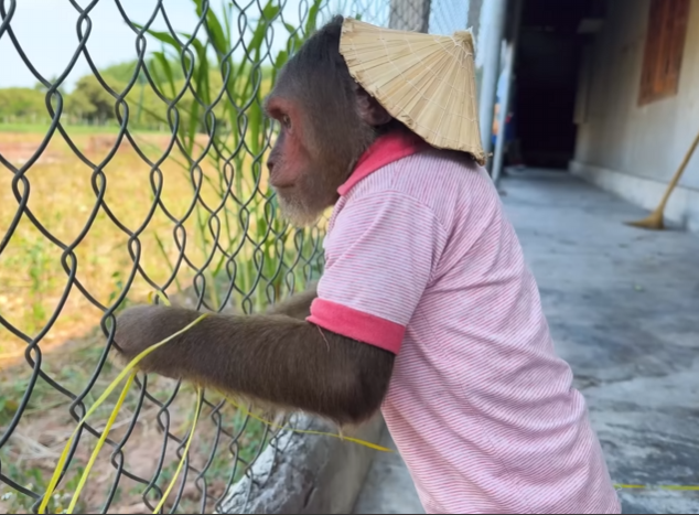 Days passed. The baby monkey grew stronger, more curious. It climbed CUTIS’s shoulders while he worked, tugged playfully at his hat, and followed him through the fields like a shadow.