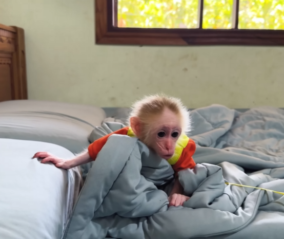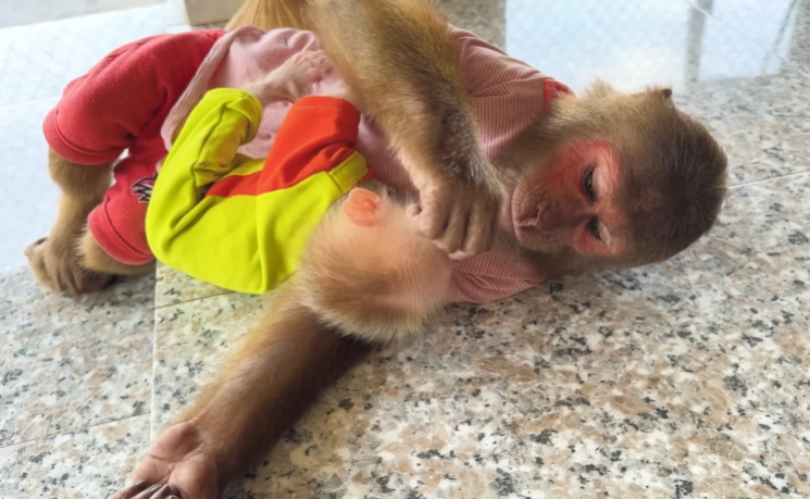 CUTIS didn’t bottle-feed the monkey like most rescuers. Instead, he mashed bananas, sweet potatoes, and a little rice water, feeding the baby with his fingers. He made soft clicking sounds, mimicking monkey calls. The baby responded with tiny chirps, gripping CUTIS’s finger with surprising strength.