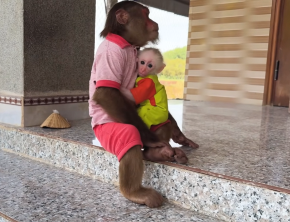 He walked to the edge of the forest with the baby monkey and sat quietly. He didn’t call out. He didn’t wave. He simply waited. Sometimes monkeys watched from the trees, curious but cautious. CUTIS never chased them away. He let the baby hear their voices, smell the forest, remember where it came from.