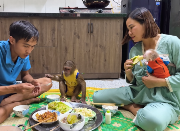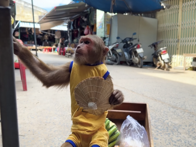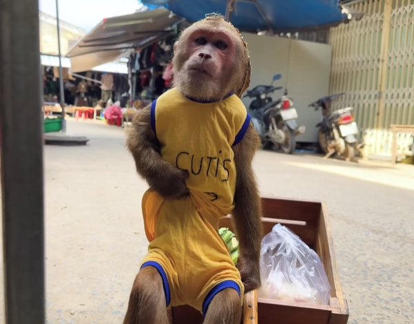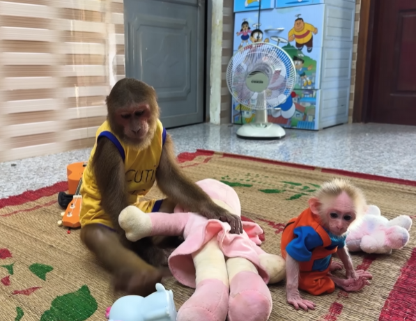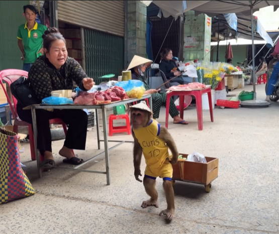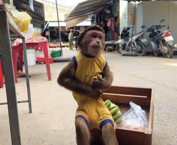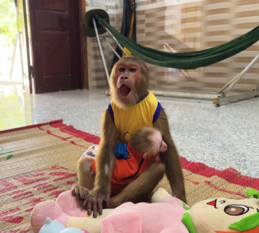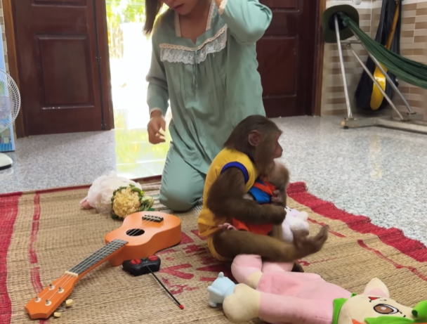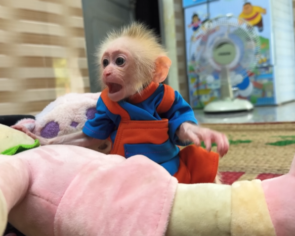 The animals, in their own way, seemed to share in the recognition. Betsy nuzzled CUTIS’s shoulder affectionately, Gigi nudged his hand playfully, and the chickens clucked happily as if applauding him. CUTIS giggled, feeling a rush of joy and accomplishment. It was a moment of triumph for the little monkey who had once only worried about playful mischief and snacks.
