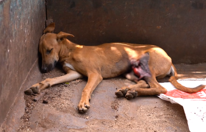 That night, the dog slept under warm lights, his body wrapped in clean bandages. Monitors beeped softly, keeping rhythm with his heart. Pain still lingered, but it was no longer unbearable. He was no longer alone on a dangerous road.