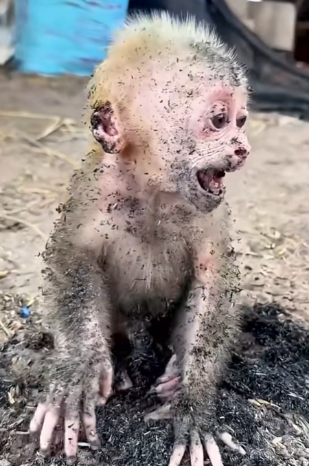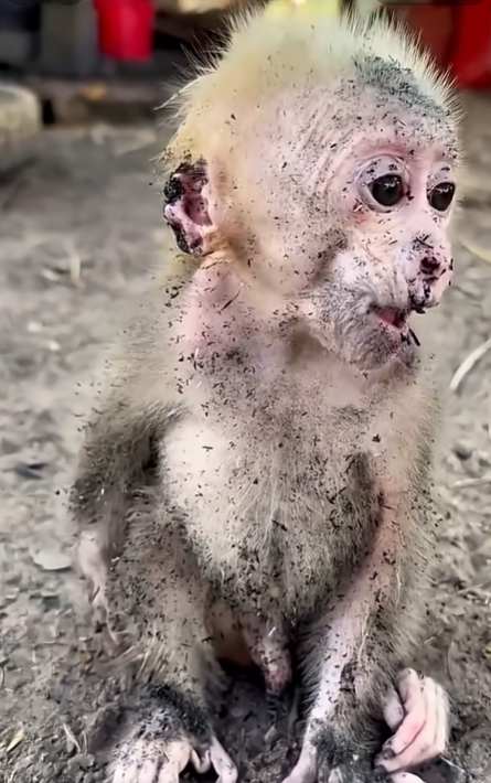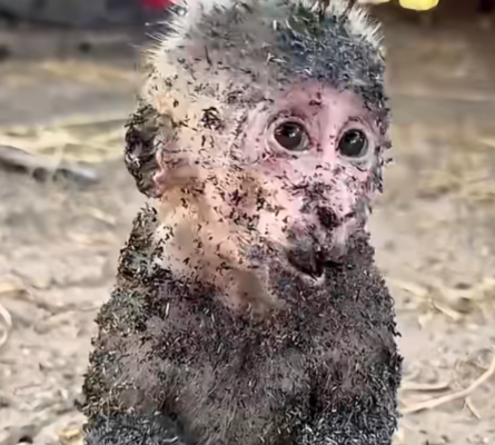 In the heart of a dense forest, where sunlight filtered through the canopy like liquid gold, a tiny monkey clung to a branch, trembling. Its fur was matted and dirty, and its eyes, usually bright and lively, were clouded with fear and confusion. Something had happened—but what? To understand the little monkey’s story, we must go back to the beginning.