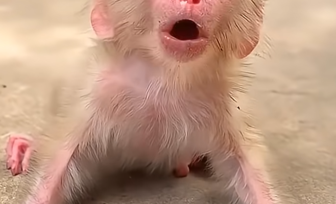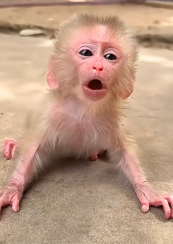 The sound was small but clear, rising into the quiet morning air. It didn’t sound like the cries people usually expect from a newborn animal. Instead, it was light and rhythmic—almost playful. If someone had been listening from far away, they might have laughed and said it sounded like a sound from a video game. A funny little “game sound monkey,” announcing its arrival with cheerful beeps and chirps.