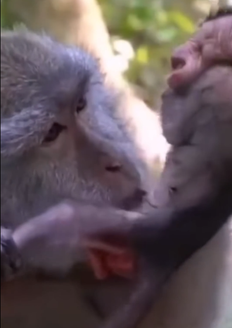 In addition, this behavior highlights the interconnectedness of health, bonding, and social structure within monkey communities. A healthy, well-cared-for newborn is more likely to integrate successfully into the troop, learn social norms, and eventually contribute to the survival of future generations. In this way, the simple act of cleaning the umbilical cord has ripple effects that influence the entire social and ecological environment.