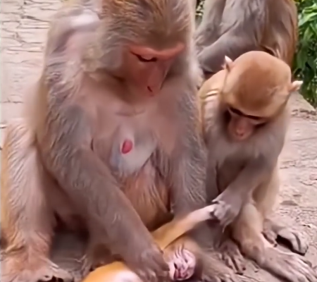 In the dense, vibrant forest where life unfolds in a delicate balance of survival, play, and exploration, the arrival of a newborn monkey brings both joy and responsibility. A tiny, fragile creature, new to the world, becomes the center of attention for the troop. The newborn depends entirely on its mother for warmth, nourishment, and protection. Every movement, every sound, every blink carries significance. Yet, even in this carefully orchestrated environment, accidents can happen. One heart-wrenching moment that recently captured the attention of observers involved a newborn baby monkey falling while drinking milk—a small misstep that reminded everyone of the fragility and innocence of life. 🐒💐🙏
