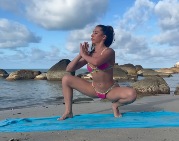 As we transition into standing poses, we maintain a fluid pace. Goddess Pose with gentle pulses, Warrior II with hip sways, and wide-legged forward folds encourage openness and release in the pelvis. Practicing barefoot on the beach enhances sensory awareness—the feeling of sand beneath the feet grounds us while still allowing freedom of movement.
