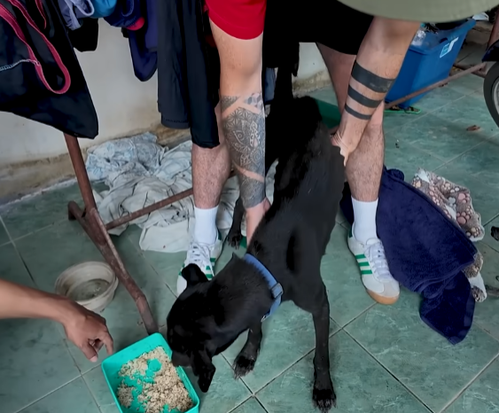 A bowl of water was placed in front of him. He stared at it for several seconds, confused, then leaned forward shakily and began to drink. The sound of his tongue against the water was frantic at first, then slower as his body struggled to process even that small relief. When he finished, he lifted his head and looked at us again. There was no gratitude in his eyes, no trust—just the fragile awareness that something had changed.
