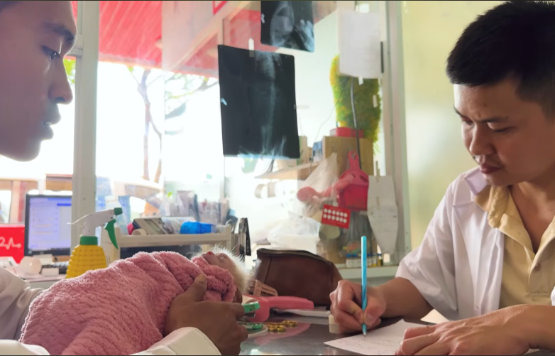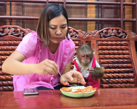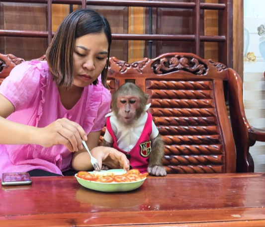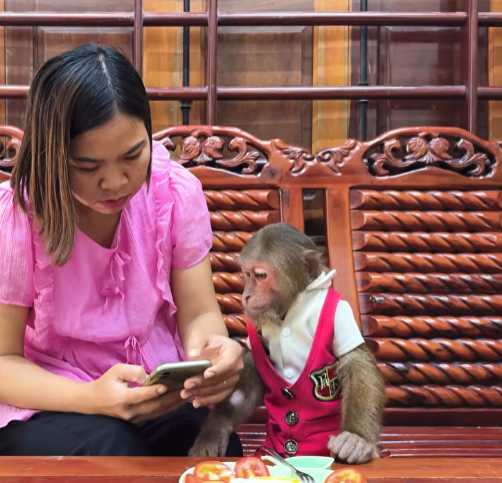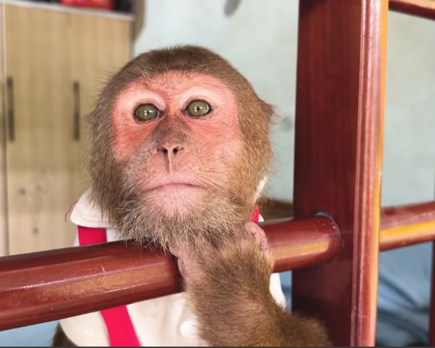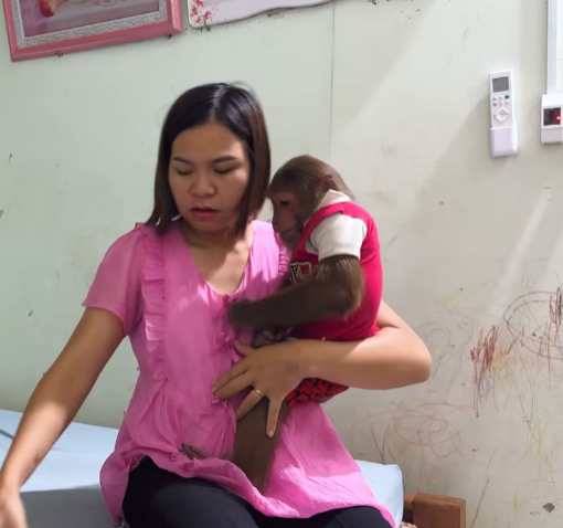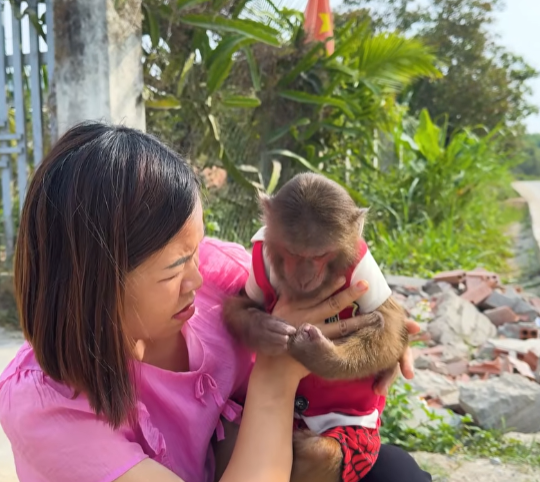 Cutis sat beside the baby monkey, his hands trembling as he gently stroked the soft fur. His eyes were red from crying, his heart heavy with fear and helplessness. This little monkey was not just an animal—he was family. From the day Cutis first held him in his arms, feeding him milk drop by drop, protecting him from cold nights and dangers, a deep bond had formed. Now, seeing him so weak felt like watching a piece of his own heart slowly break.