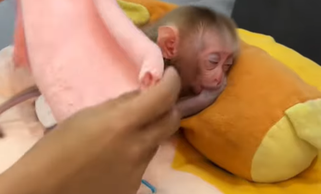 In the quiet corner of a forest where sunlight fell in soft patches and the air smelled of damp leaves, a little monkey sat alone. He was small even for his age, with fur the color of warm earth and eyes that seemed too big for his face. Those eyes watched everything carefully—the swaying branches, the crawling ants, the distant calls of birds. But what he watched most closely was the thin stick resting in his hands.