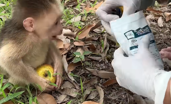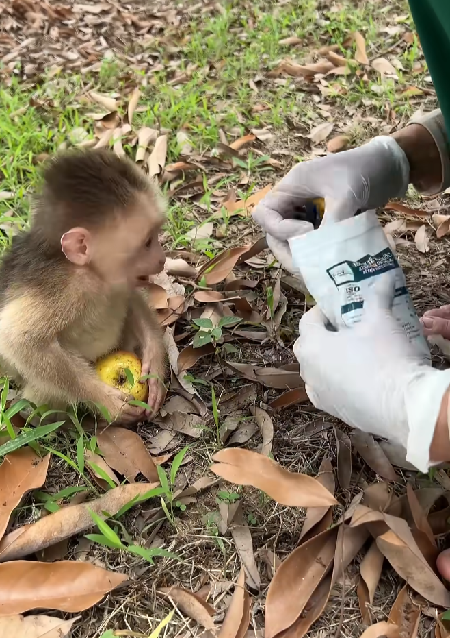 The baby monkey mistook wound ointment for food šŸ¤£šŸ’
