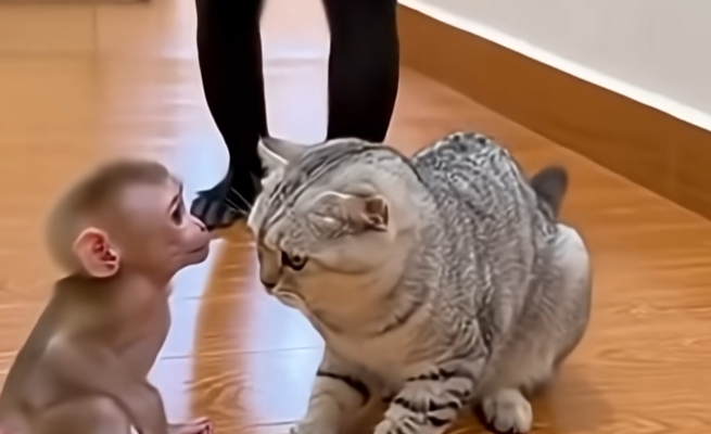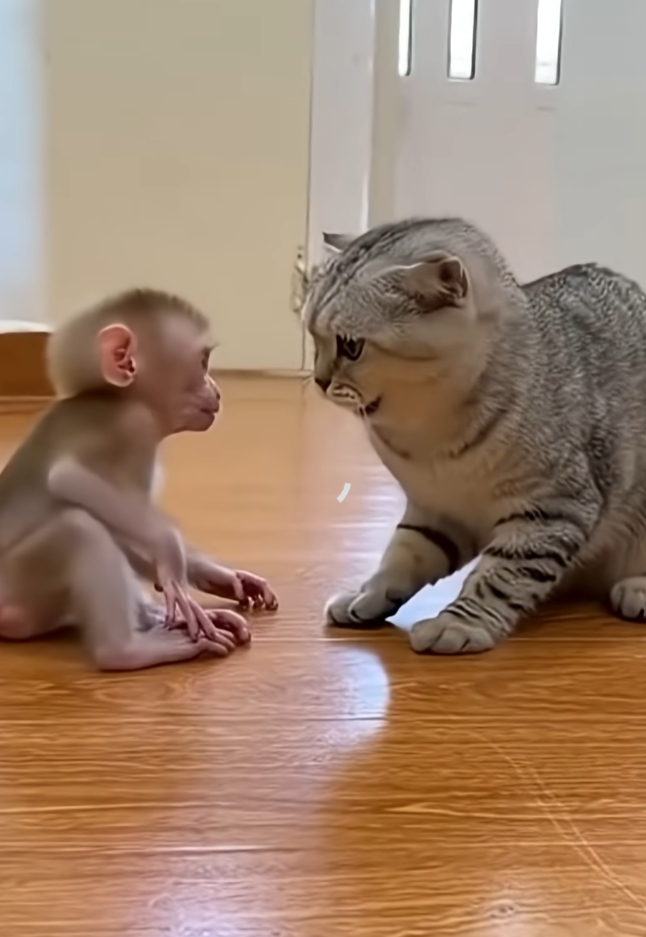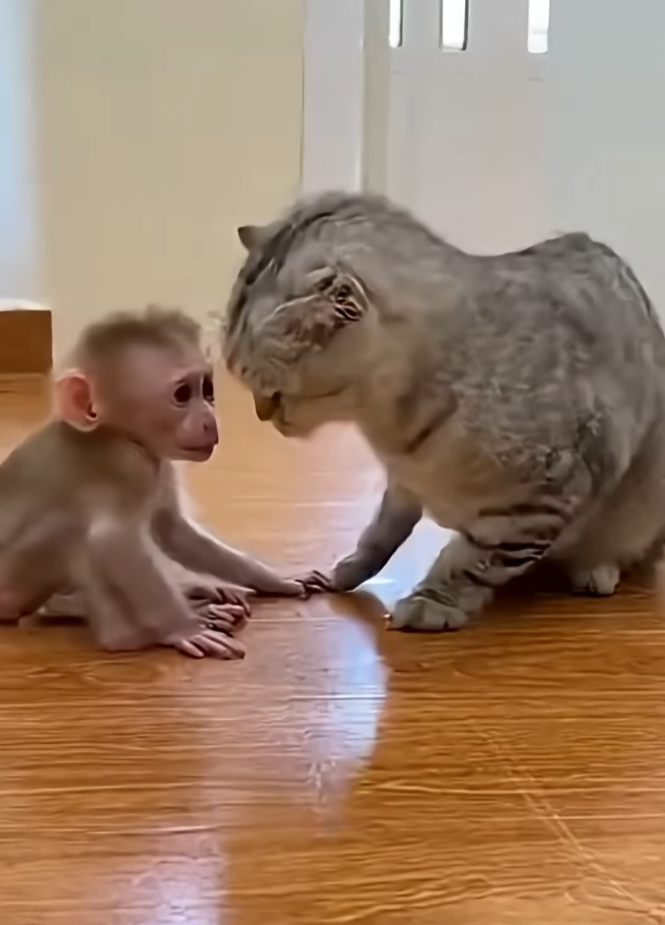That simple moment showed how powerful kindness can be—even between different species. Milo didn’t see Luna as a cat. Luna didn’t see Milo as a monkey. They saw each other as companions, sharing space, warmth, and trust.