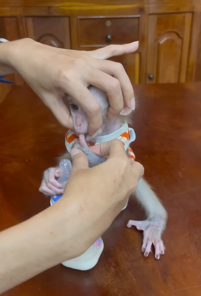 In the end, the journey wasn’t just about saving a thumb from damage. It was about helping a baby monkey grow stronger, more confident, and more secure in a world full of new experiences. With gentle guidance and endless care, Momo learned that he didn’t need to hurt himself to feel safe.