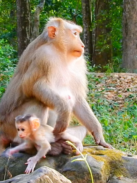 The mother pauses occasionally, allowing the infant to adjust, sometimes grooming it or softly vocalizing reassurance. The baby’s playful attempts to explore, combined with the mother’s patience, create a dynamic yet soothing scene. Observers can feel the energy of the forest—the swinging branches, the rustle of leaves, and the soft coos and chirps—all contributing to a natural stress relief experience.