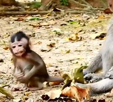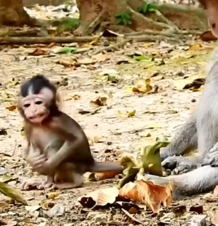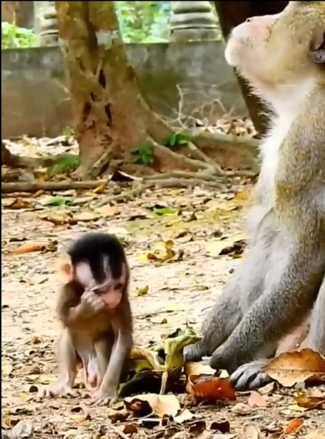 At the edge of the forest, where tall trees leaned gently toward the morning light, a small troop of monkeys began another day of survival, play, and quiet emotion. Among them was a tiny baby monkey named Lumo, whose wide eyes reflected both curiosity and fear. Life in the wild taught lessons early, and for Lumo, one of the hardest lessons was learning to trust his own father.