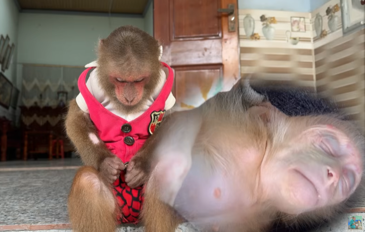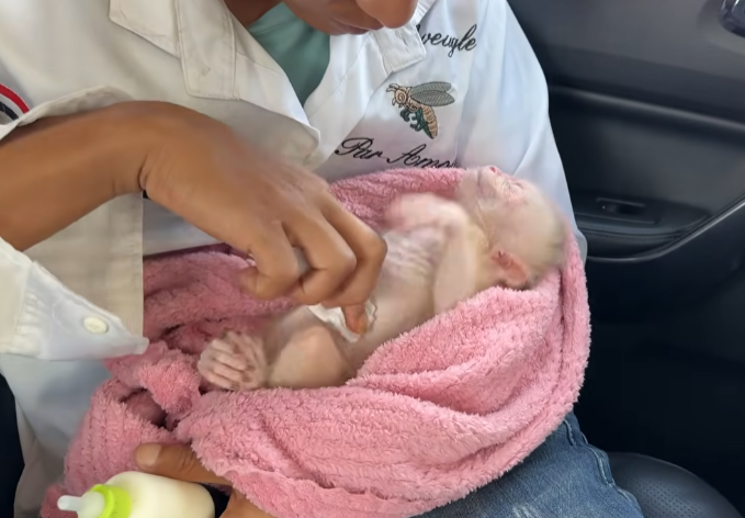 The baby monkey didn’t open its eyes much, but sometimes its fingers moved slightly, as if responding. Each tiny movement felt like a miracle.