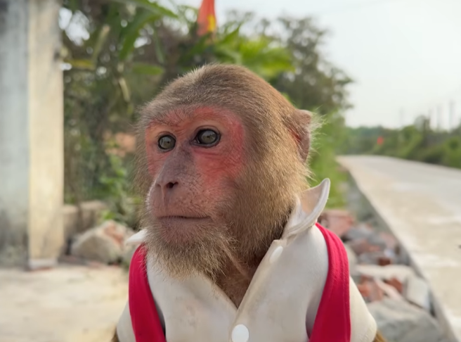 The baby monkey lay weak beneath a cluster of bushes, its small body trembling. Its breathing was shallow, uneven, and every movement looked painful. Normally, a baby monkey would cling tightly to its mother, warm and protected, but this little one was alone. No comforting fur, no gentle heartbeat—only cold earth and fear. Its eyes, once full of curiosity, were now half-closed, glazed with exhaustion and pain.