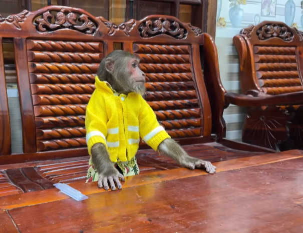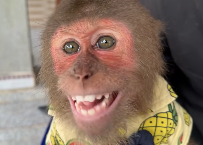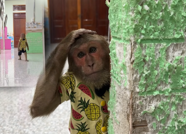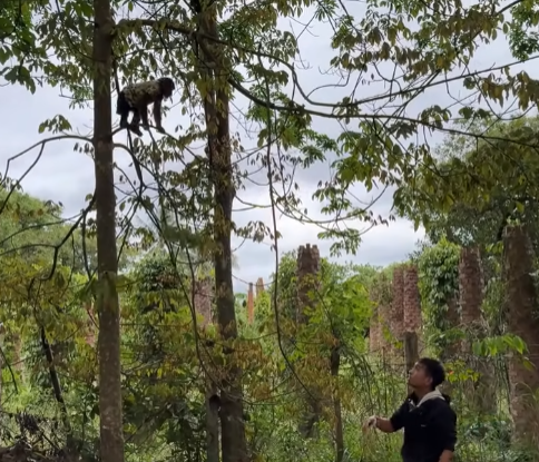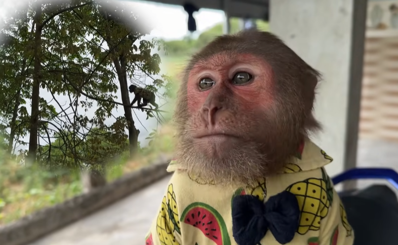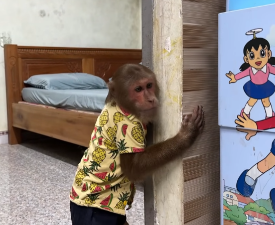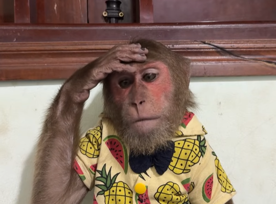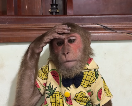 Instead of slowing down, Cutis became even more reckless. He tried to carry food with one hand while sneezing into the other, resulting in fruit rolling everywhere. Monkeys slipped, grabbed, and squealed in excitement. One small monkey jumped onto Cutis’s shoulder, startling him so badly that he spun around in circles.