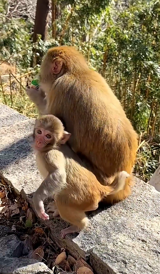 There are particularly touching moments when hunger and curiosity combine. A baby monkey, having fed, may explore its surroundings while staying close to the mother. The mother watches carefully, ready to respond to renewed hunger or potential danger. These moments of balance—between feeding, play, and vigilance—illustrate the remarkable adaptability and intelligence of monkeys. Mothers manage multiple priorities simultaneously, ensuring that the infant grows healthy, skilled, and safe.