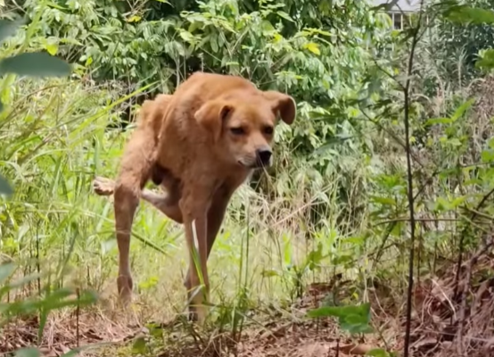 Locals had started calling him the “half dog.” It wasn’t cruelty that gave him the name; it was confusion mixed with sorrow. His back legs were twisted inward, one shorter than the other, and his spine curved in a way that made walking a slow, exhausting effort. His front half bore the strength of survival—broad chest, alert ears, bright eyes—but the rest of him lagged behind like a burden he had never chosen. On top of the congenital deformities, fresh injuries marked his body: a deep gash along his flank, swollen joints, and scrapes that spoke of countless falls.