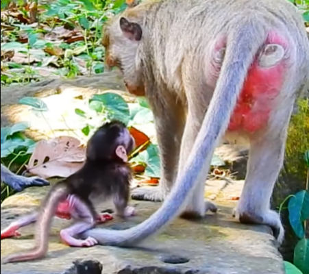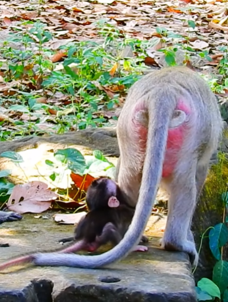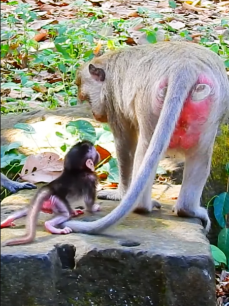 Nearby, a mother monkey sits with her infant clinging to her chest. Their fur glistens in the morning light, and the baby’s eyes are wide with curiosity. The mother gently grooms her child, picking through the tiny tufts of fur for insects and debris. Each motion is deliberate, slow, and soothing, creating a sense of safety and warmth. The baby responds with soft coos and playful squirms, its tiny hands exploring the contours of its mother’s body. Watching this scene, one cannot help but feel a sense of calm—the rhythmic grooming, the tender interactions, the gentle balance of care and play.