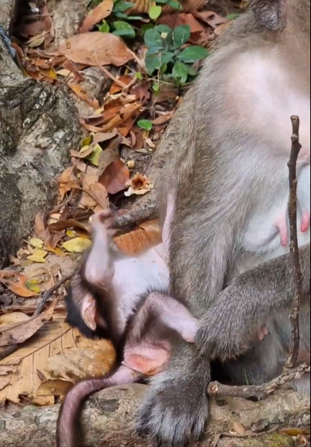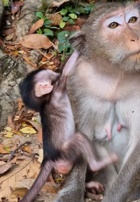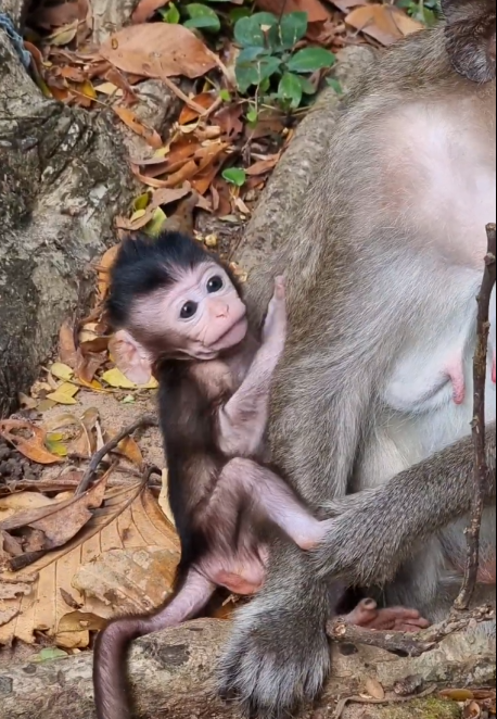 The baby monkey, whom the troop affectionately called Miko, was born into a moderately sized group of monkeys living near a small, meandering river. From the very first days of life, Miko was enveloped in the care and attention of his mother, a gentle female known for her nurturing instincts and patience. Like all infants in the troop, Miko spent his early weeks clinging to his mother’s fur, observing the world from the safety of her arms. He was curious about everything—the chirping birds, rustling leaves, sparkling water, and the distant calls of other troop members.