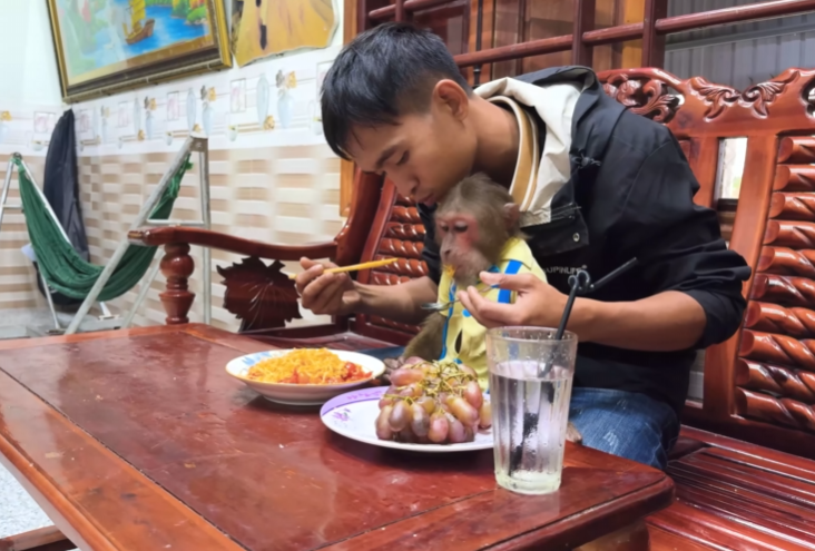 Later that day, Dad went even further. He shared his favorite fruit with CUTIS, breaking it into small pieces and feeding him slowly. He let CUTIS climb onto his back and carried him longer than usual, even when CUTIS could have walked on his own. Every time CUTIS shifted or made a small sound, Dad responded immediately, adjusting his grip or grooming him again.