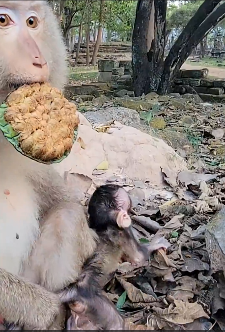 For any newborn monkey, the first feeding experience is critical. Milk provides essential nutrients, hydration, and comfort, and the act of suckling strengthens the bond between mother and infant. When Baby Atro drank milk for the first time, it marked an important milestone in his development. The moment was filled with excitement and relief, as his mother Atra watched carefully, ensuring that her little one fed properly and safely.