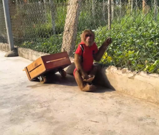 The smell made him hesitate. Other monkeys watched closely, whispering, curious and unsure.