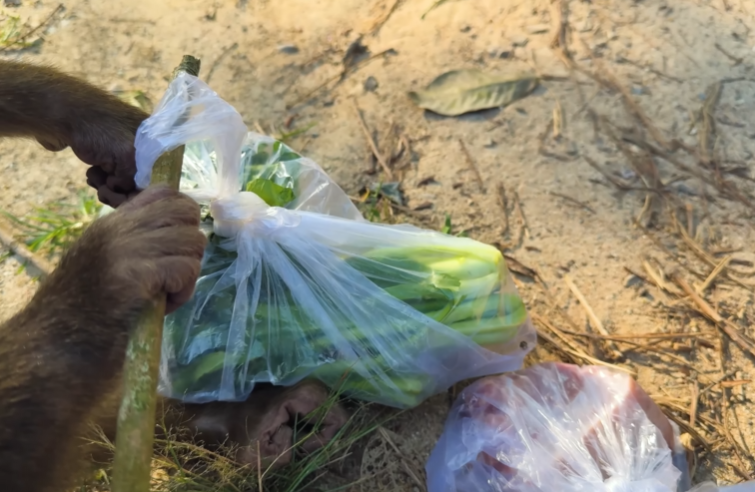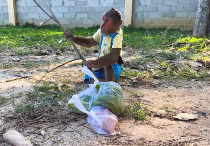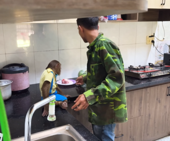 Because who would ever imagine a young monkey secretly going to the market to buy a huge piece of meat—just to make his dad happy?