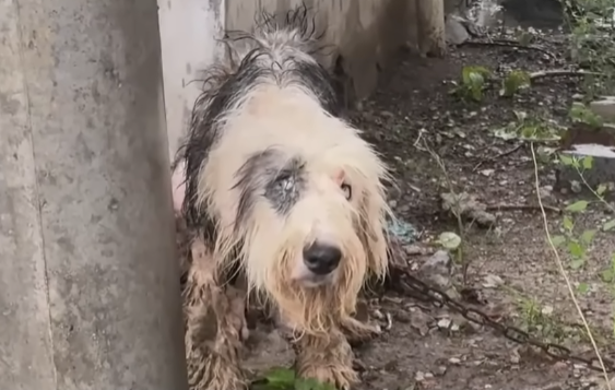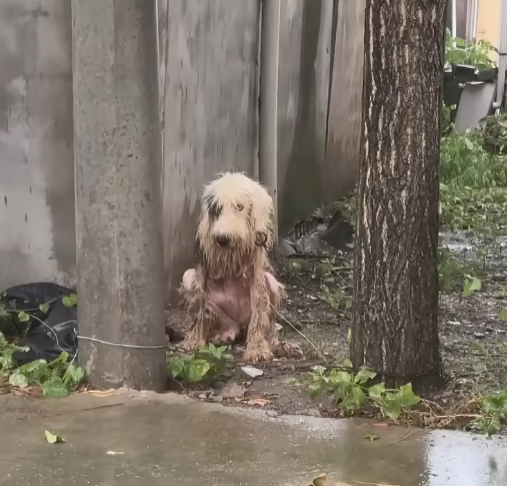 The rain began as a whisper, soft drops tapping the leaves, but soon it grew into a relentless downpour that soaked everything it touched. The sky was heavy and gray, like it was carrying the same sorrow that weighed on his small chest. He sat there, chained beneath the old wooden post, his fur clinging to his thin body, his eyes wide with confusion and pain. Every sound around him felt louder in the storm, and every heartbeat reminded him that he was alone.