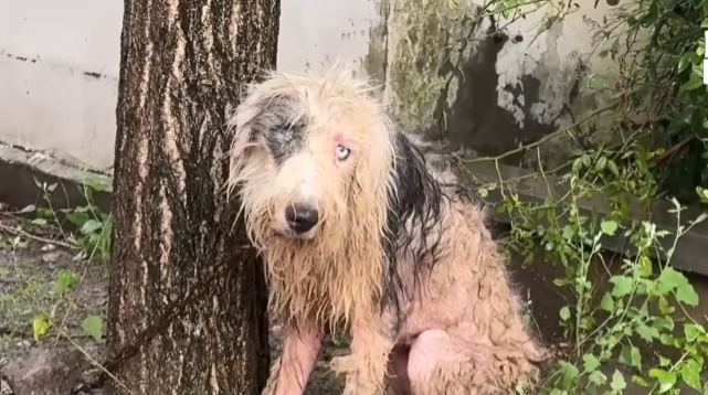 The chain was heavy, not just on his body but on his heart. Each time he tried to move closer to shelter, it pulled him back, reminding him of his helplessness. He whimpered softly, his voice almost lost beneath the sound of rain hitting the ground. Tears mixed with raindrops on his face, making it impossible to tell where the storm ended and his sorrow began.