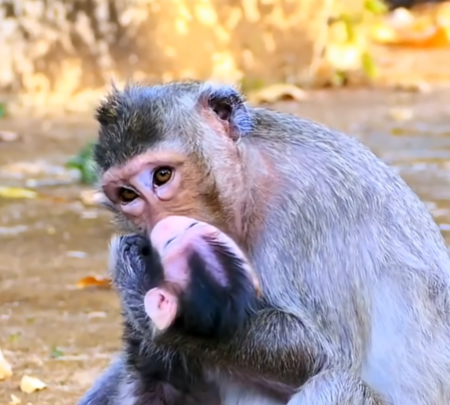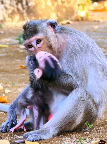 From the moment a baby monkey is born, the world changes for the mother. Her life no longer revolves around her own needs alone. Every movement, every decision, every risk she takes is shaped by one priority—her child’s safety. She holds the tiny newborn tightly against her chest, fragile fingers clutching her fur, eyes barely open to a world still unknown. In that embrace lives protection stronger than any shelter the forest could offer.