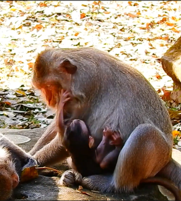 From the moment a baby monkey is born, everything in the mother’s life changes. Her days and nights revolve around her tiny offspring. Every movement she makes, every decision, is guided by one instinctive priority—protecting her baby. Her arms cradle him, and her chest provides warmth, rhythm, and reassurance. The newborn, small and fragile, clings instinctively, wrapping his tiny fingers around her fur, sensing for the first time the comfort and security of life beyond the womb.