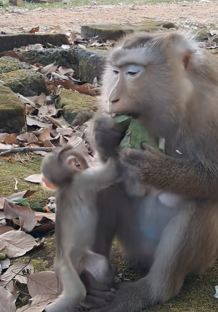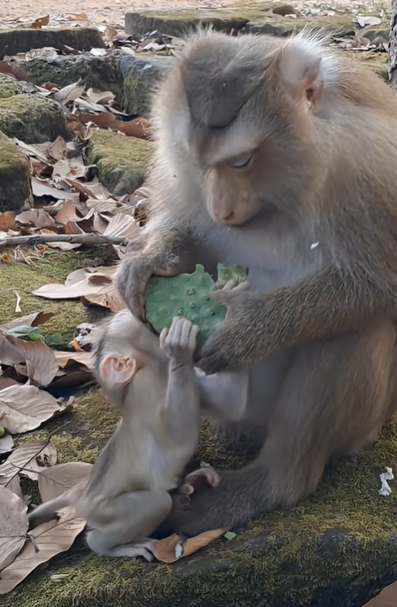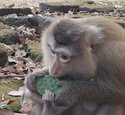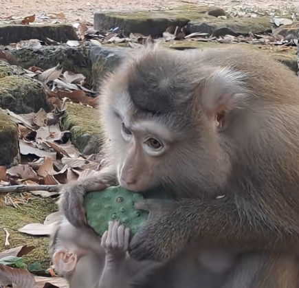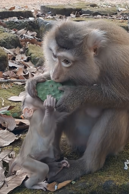 In the heart of a sun-dappled forest, life moves slowly but meaningfully. The tall trees sway gently in the breeze, sunlight filters through the leaves in golden shafts, and a soft hum of nature fills the airābirds chirping, leaves rustling, and the occasional distant call of a monkey troop. Among these sounds of life, one little figure captures everyoneās attention: baby girl Rina, a tiny, curious monkey with bright eyes and endless energy. Today, her attention is focused entirely on something that, in her world, is very important: she wants to eat luts-seed like her mommy, Rose.