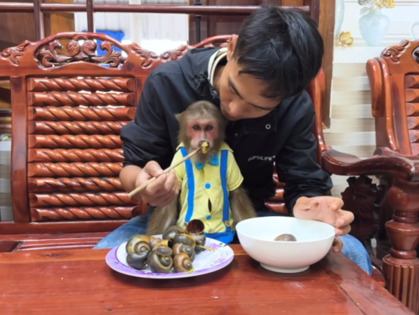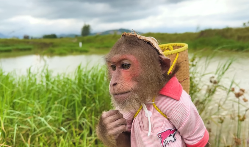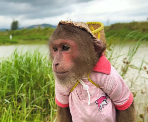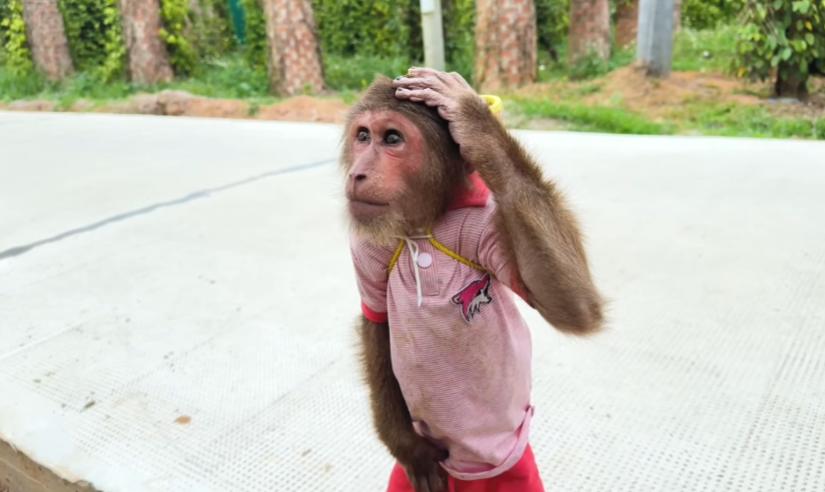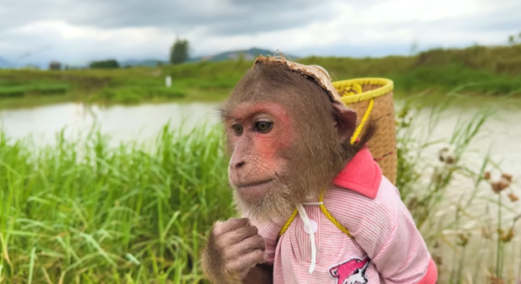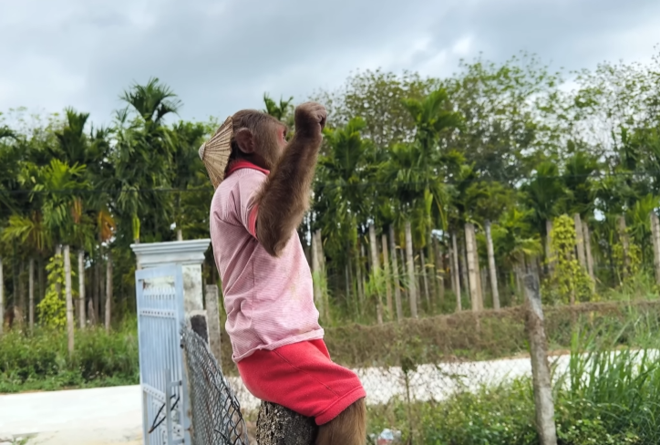 The morning began like any other in the little house by the edge of the forest, where birds chirped on the mango tree and sunlight spilled across the yard in soft golden patches. Dad was busy fixing a loose chair leg, humming to himself, completely unaware that a “top-secret mission” was already underway. High above him, hidden behind banana leaves and peeking eyes, CUTIS the clever monkey was planning something very special—and very funny.