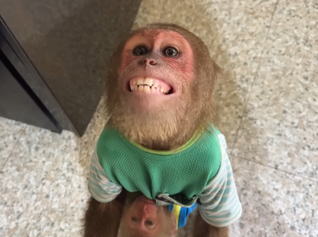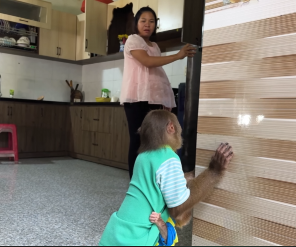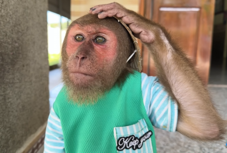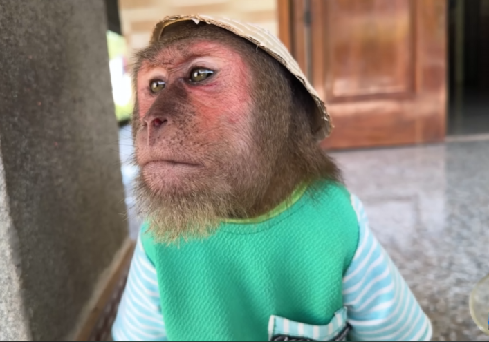 The baby monkey played his role perfectly. He stayed near Mom at all times, acting like her personal little guardian. When other monkeys got too close or too noisy, the baby would squeak sharply, alerting CUTIS. CUTIS would then step in—not aggressively, but firmly—making sure Mom had space and peace. It was teamwork at its purest form.