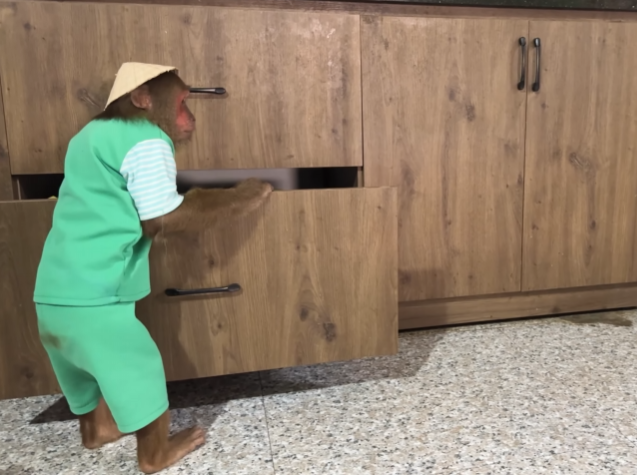But the most surprising part of their plan was how they created comfort. CUTIS gathered large leaves and arranged them where Mom liked to rest, forming a soft, shaded bed. The baby monkey helped by dragging smaller leaves and even flowers, dropping them clumsily but proudly near Mom’s resting spot. It wasn’t perfect, but it was made with love—and Mom clearly appreciated it.