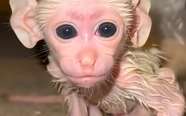 A faint movement stirred the bag, followed by a soft, uncertain sound. It wasn’t loud enough to demand attention, only gentle enough to tug at a caring heart. When the bag was opened, a pair of wide, dark eyes blinked up at the light. Inside was a baby monkey, no bigger than a loaf of bread, curled tightly as if trying to disappear. His fur was thin and ruffled, his tiny hands trembling as they searched for something familiar that wasn’t there.
