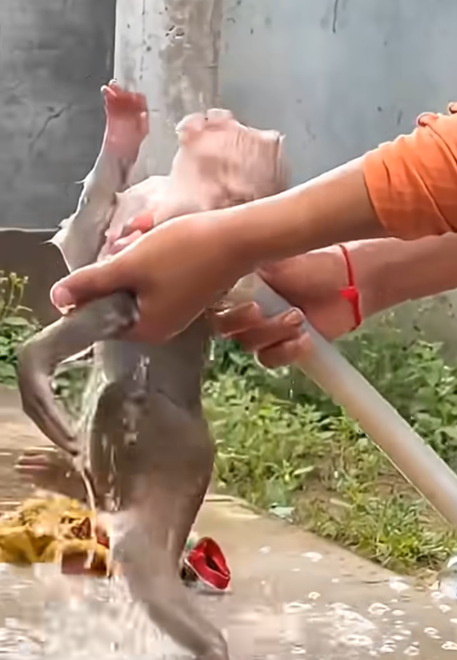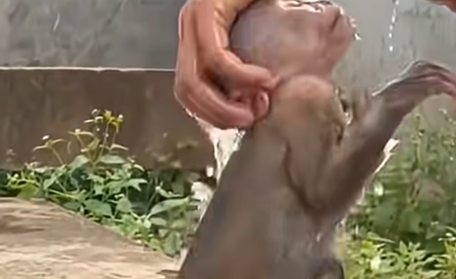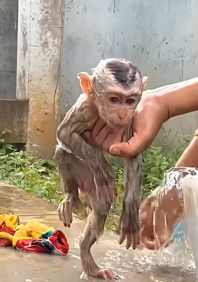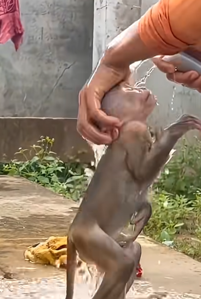 The baby leaned into her touch, trusting completely. His body relaxed, no longer tense, no longer unsure. He had learned, in his short life, that his mother’s hands meant care. That her presence meant warmth. That even when something felt strange—like cool water on his fur—it could still be safe if she was there.