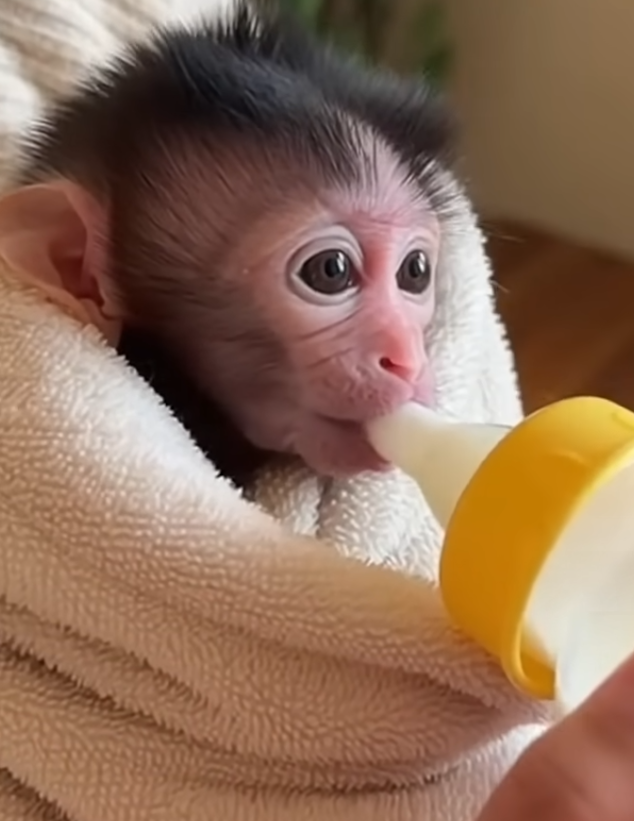 In the early days, the baby monkey slept a lot. When awake, it clung tightly to fingers or fabric, holding on as if afraid the world might disappear again. This clinging was not just physical—it was emotional. Like human babies, young monkeys seek comfort through touch. That simple act of holding gave the baby a sense of safety it had been missing.